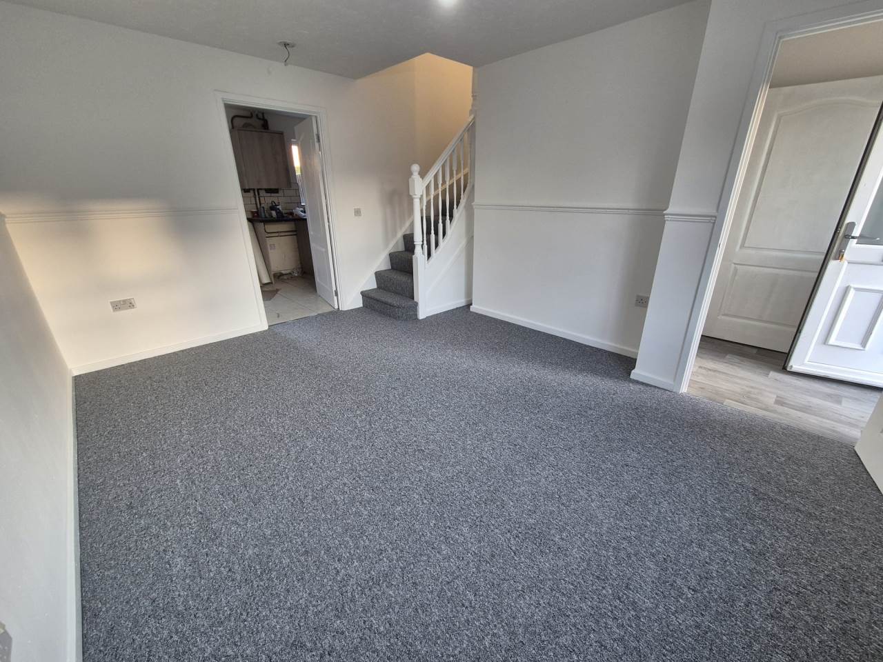 Three bedroom family home with a driveway, front door leading into a hallway with cloakroom. The living room has been freshly re-carpeted and has stairs to the first floor. To the rear of the property there is a modern kitchen/dining room with patio doors out to the private rear garden. Upstairs, there are three bedrooms, one of which has built in wardrobes and a good sized family bathroom with the benefit of both a bath and separate shower.